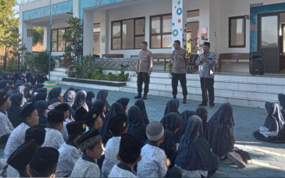 Kegiatan Sekolah bersama pihak Kepolisian dalam pendidikan rambu-rambu lalu lintas.
